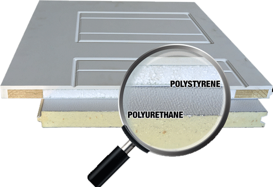 Overlays are smooth steel with, well.... overlays. Overlays offer depth and clean lines. Often with no other hardware, this is the modern carriage house look.